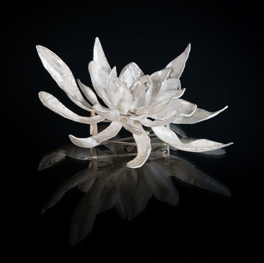 Crafted in sterling silver and formed through the techniques of chasing and repoussé, transformed the Epiphyllum into a sculptural relief. Each petal is delicately raised and shaped, capturing the flower’s graceful unfolding under moonlight, suspended in a pause. A brief bloom is preserved in metal, as a piece of cherished memories preserved in the heart.